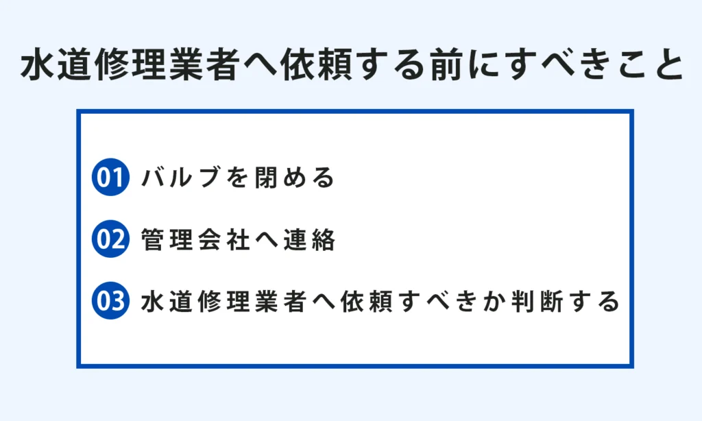ここでは、水道修理業者へ依頼する前にすべきことについて解説します。