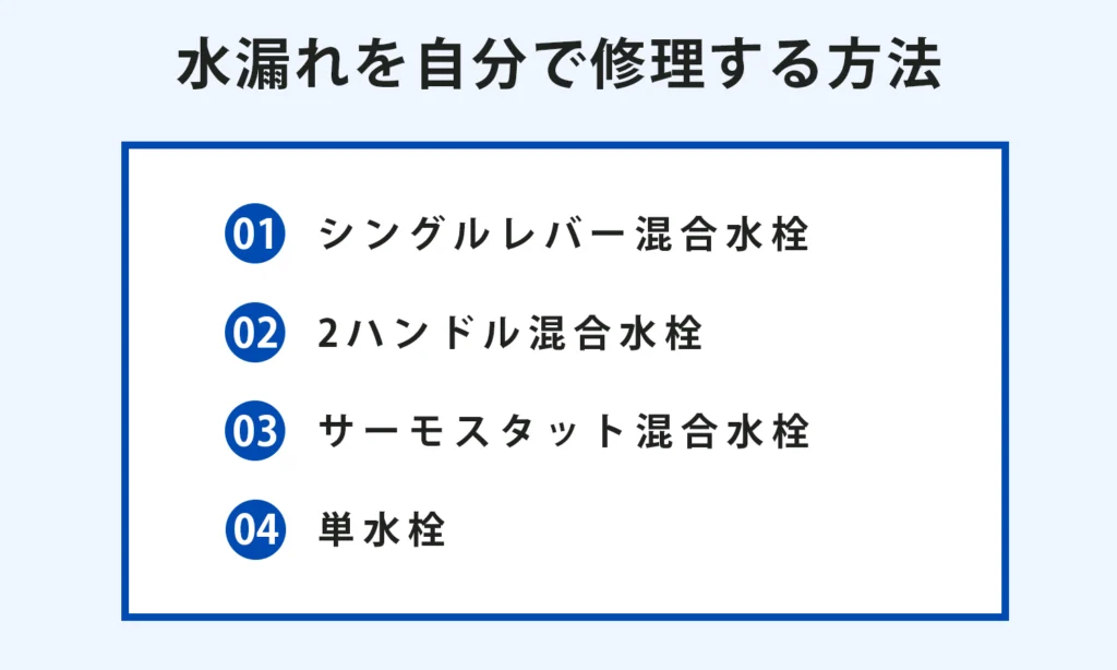 水漏れしてる単水栓を修理する際は、以下の7つのステップで完了します。