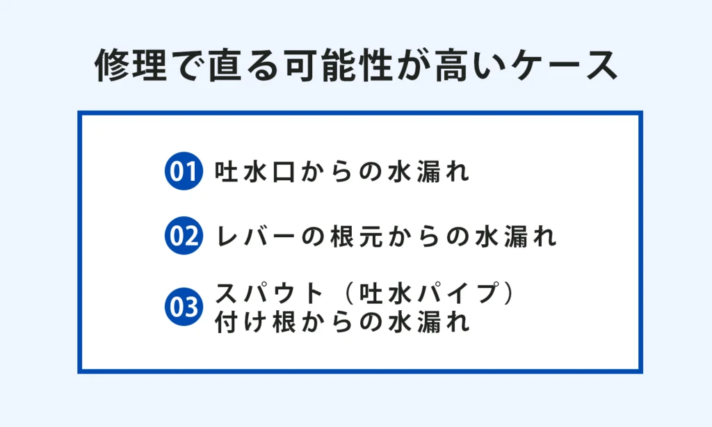 蛇口本体に目立った損傷がなく、設置から10年前後であれば修理で改善するケースが多い傾向にあります。