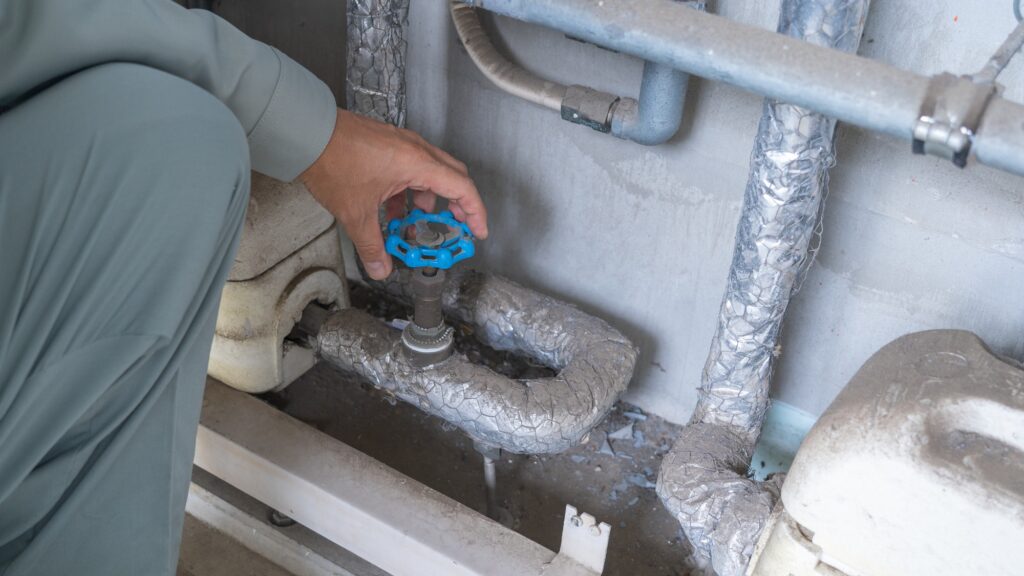 例えば凍結で破裂してしまった場合は、水道の元栓を閉めて給水を止めることで応急処置ができます。