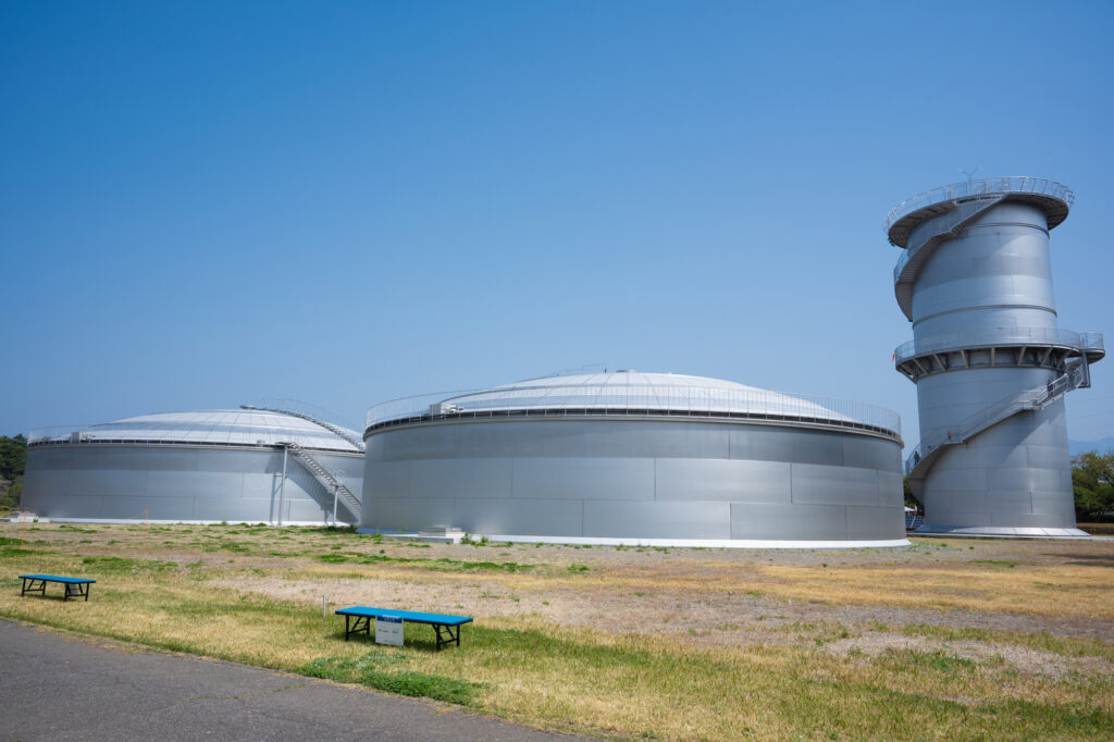 配水池は、水を一時的に貯めておく巨大なタンクのような設備です。